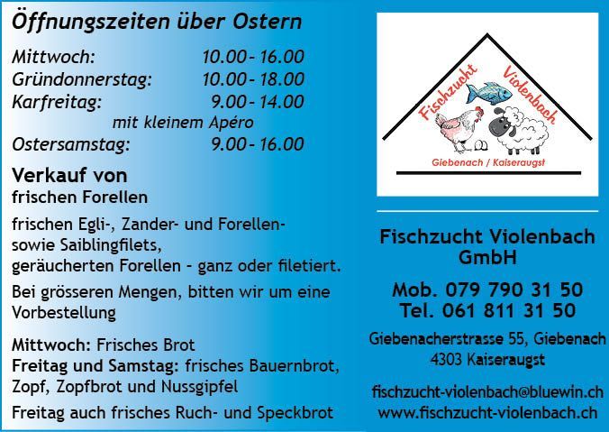 Unsere Forellenzucht liegt im idyllischen Giebenach / Kaiseraugst, nahe der deutschen Grenze.